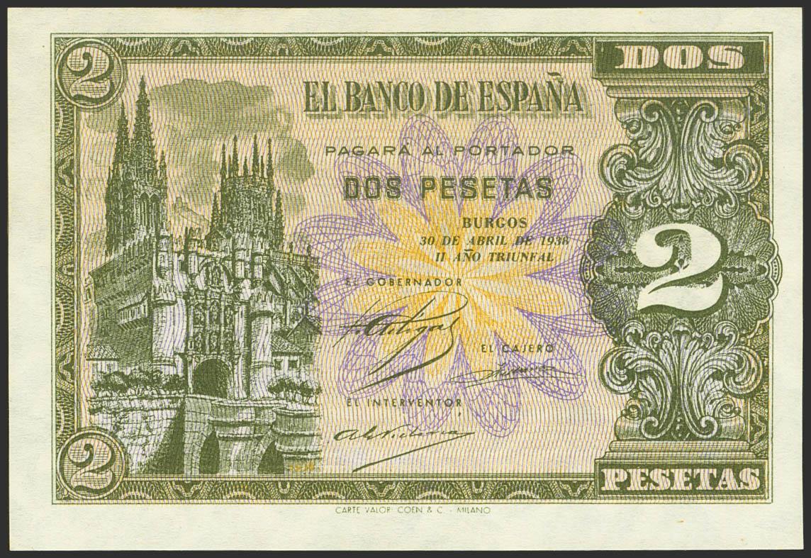2 Pesetas. April 30, 1938. Series H. (Edifil 2021: 429a). Original sizing. Uncirculated.