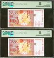 2000 Pesetas. April 24, 1992. Correlative couple. Special series 9A. (Edifil 2023: 482b, Pick: 162*). Rare in this quality. Uncirculated. PMG66EPQ packages, both.