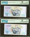 10,000 Pesetas. October 12, 1992. Correlative couple. Special series 9A. (Edifil 2023: 485b, Pick: 166*). Unusual in this exceptional quality. Uncirculated. PMG65EPQ encapsulated, both.
