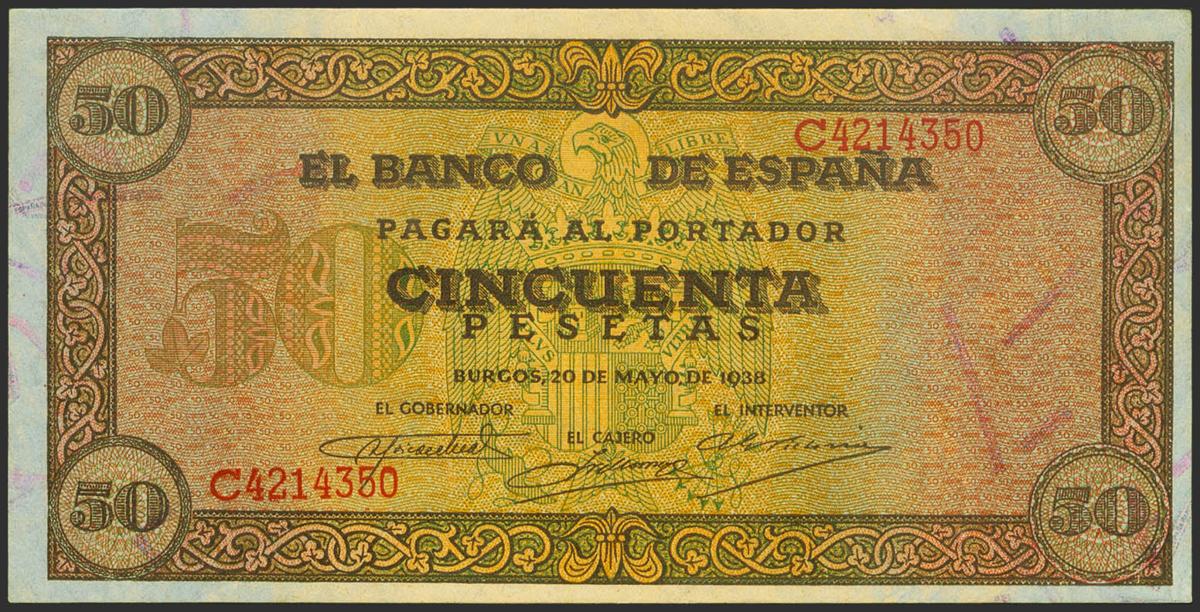50 Pesetas. May 20, 1938. Series C. (Edifil 2023: 431a). It retains all its original finish. EBC+++.