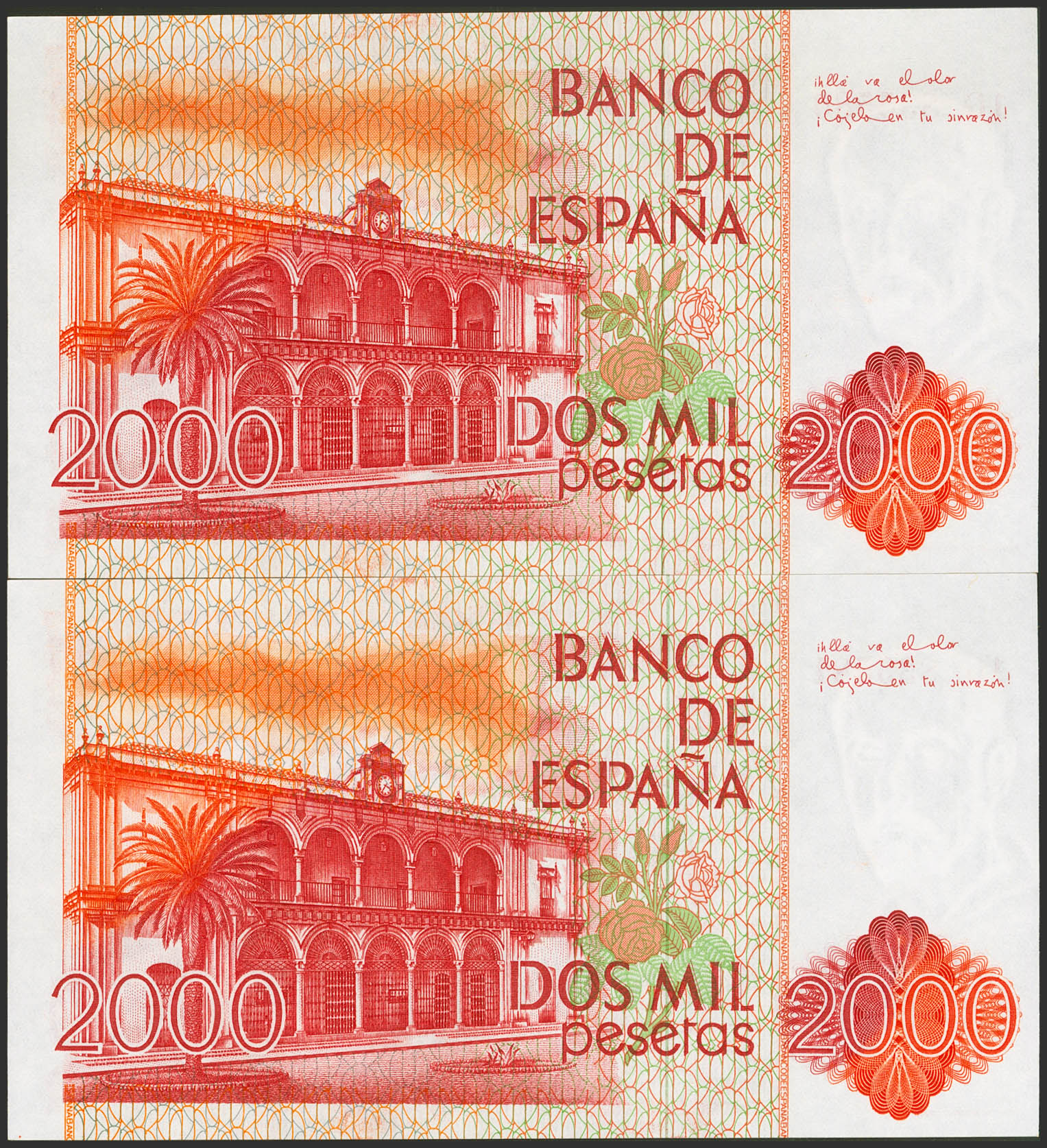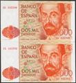 2000 Pesetas. July 22, 1980. Correlative couple. 1G series. (Edifil 2023: 479a). Uncirculated.