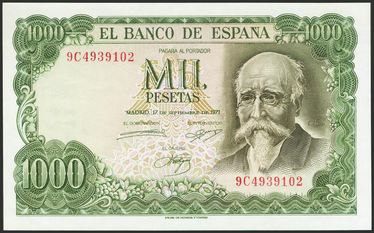 1000 Pesetas. September 17, 1971. Special series 9C. (Edifil 2023: 474d). Rare series, original finish. Uncirculated.