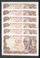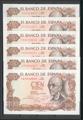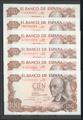 Precioso e interesante conjunto de 24 billetes de 100 Pesetas emitidos el 17 de Noviembre de 1970, incluyendo todas las letras de la octava emisión, última de todas las emitidas (7A, 7B, 7C, 7D, 7E (hay dos de esta serie con las numeraciones 7E6000000 y 7E5999999), 7F capicúa, 7G, 7H, 7I, 7J (hay dos de esta serie con las numeraciones 7J5085805 y 7J5999999, uno de ellos capicúa), 7K, 7L, 7M, 7N, 7P capicúa, 7Q capicúa, 7R capicúa, 7S capicúa, 7T, 7U capicúa, 7V (numeración V0000002) y 7W. (Edifil 2017: 472c). Raro conjunto y de muy buena calidad, todos los billetes presentan apresto original (el conjunto debe ser considerado a todos los efectos de máxima calidad especialmente en un conjunto asÃ, es posible que haya uno a lo sumo dos billetes en calidad SC- y ni tan siquiera eso pero preferimos optar por la prudencia, en nuestra opinión es algo absolutamente despreciable). SC/SC-.