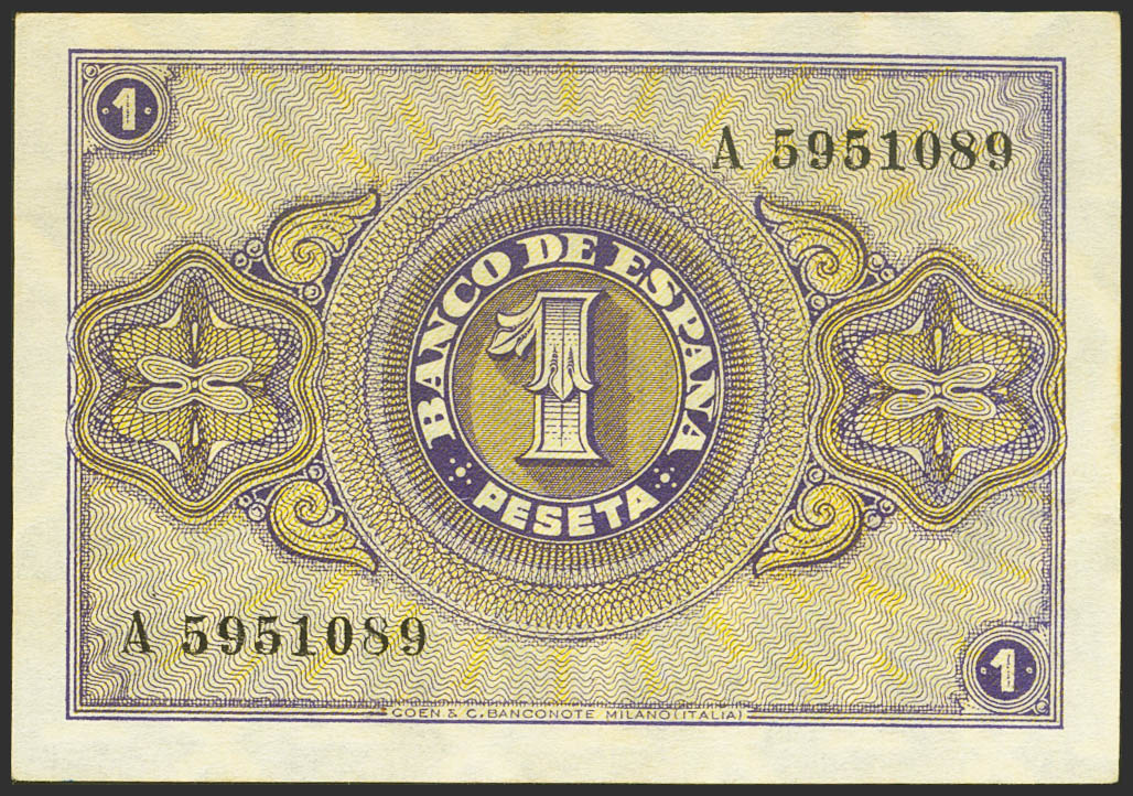 1 Peseta. 28 de Febrero de 1938. Serie A. (Edifil 2021: 427). Apresto original. SC-.