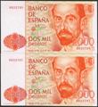 2000 Pesetas. July 22, 1980. Correlative pair and very low numbering. No series. (Edifil 2021: 479). Uncirculated-.