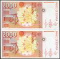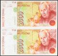 2000 Pesetas. April 24, 1992. Correlative pair. Series A. (Edifil 2023: 482a). Uncirculated.