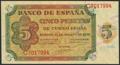 5 Pesetas. August 10, 1938. Series C. (Edifil 2023: 435a). It retains much of its original appearance. Good Extremely Fine+.