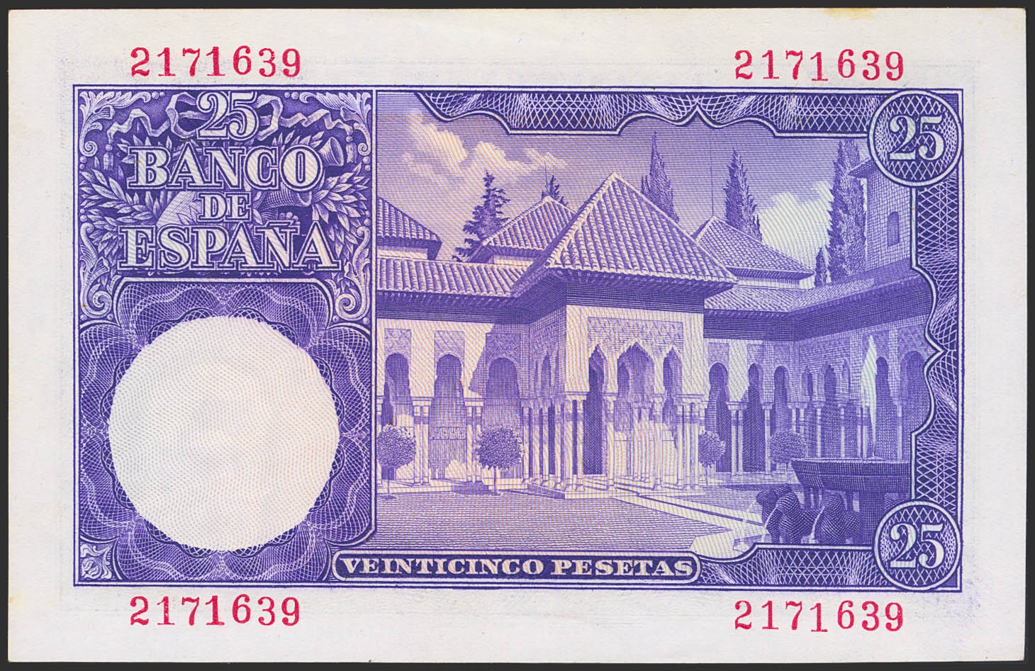 English 25 Pesetas. July 22, 1954. No series. (Edifil 2023: 467). Unusual, it retains all its original appearance, some age marks. Uncirculated--.