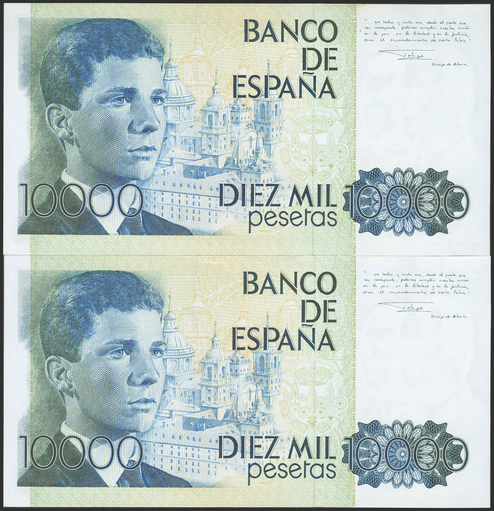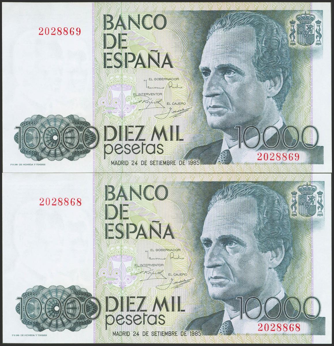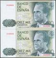 10,000 Pesetas. September 24, 1985. Correlative pair. No series. (Edifil 2021: 481). Uncirculated-.