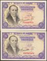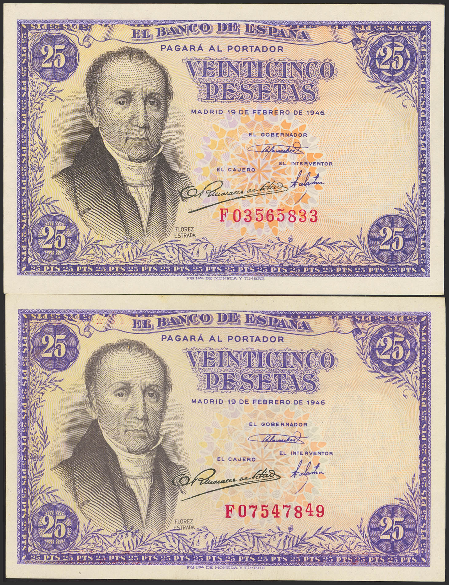 25 Pesetas. February 19, 1946. Corresponding pair. Series F. (Edifil 2023: 450a). Original size. Uncirculated-.