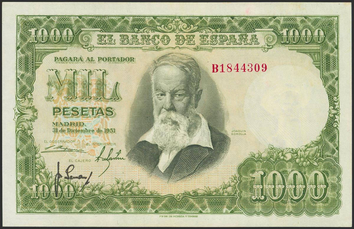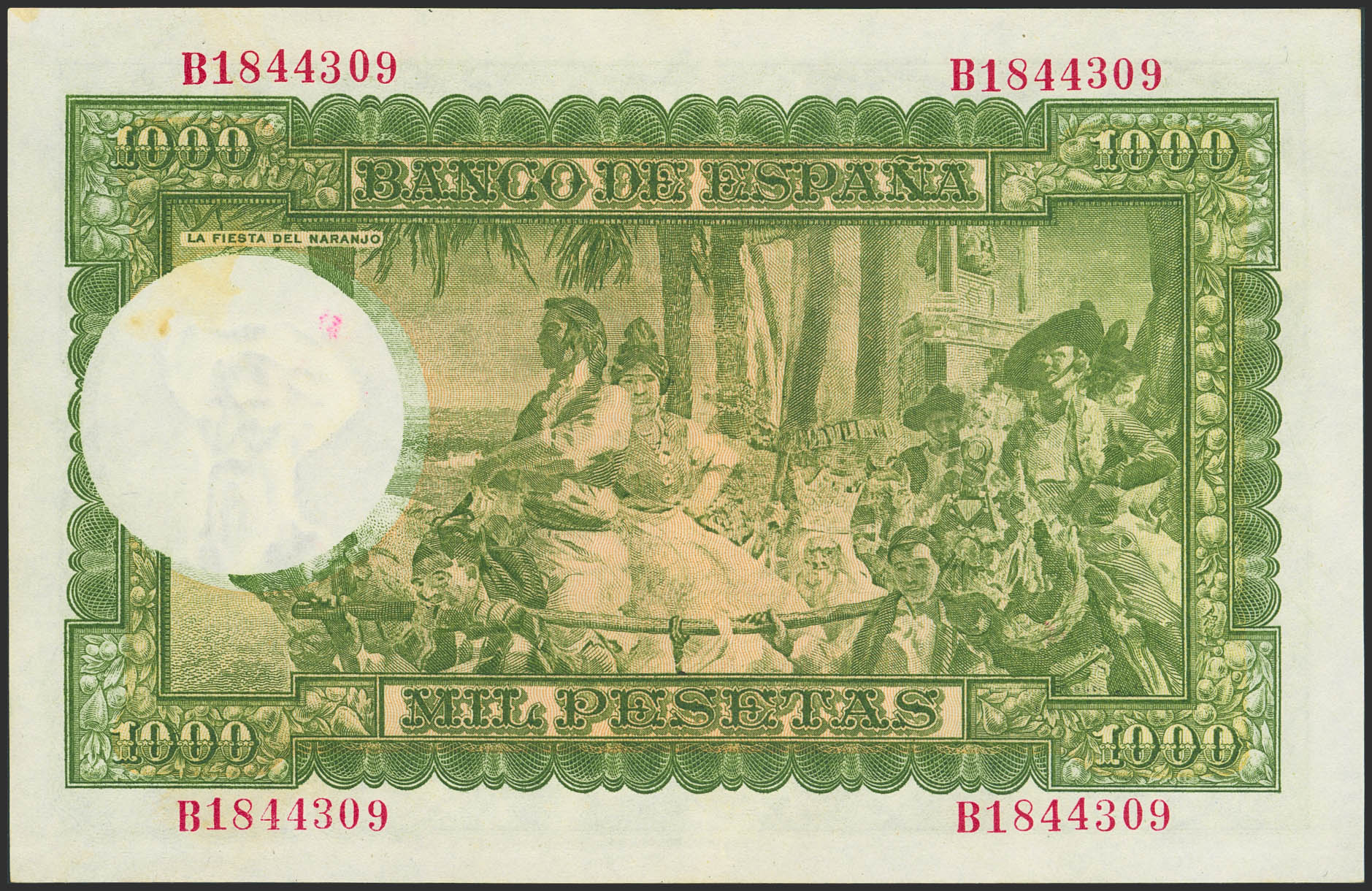1000 Pesetas. 31 de Diciembre de 1951. Serie B. (Edifil 2023: 463). Manchita del tiempo. EBC.