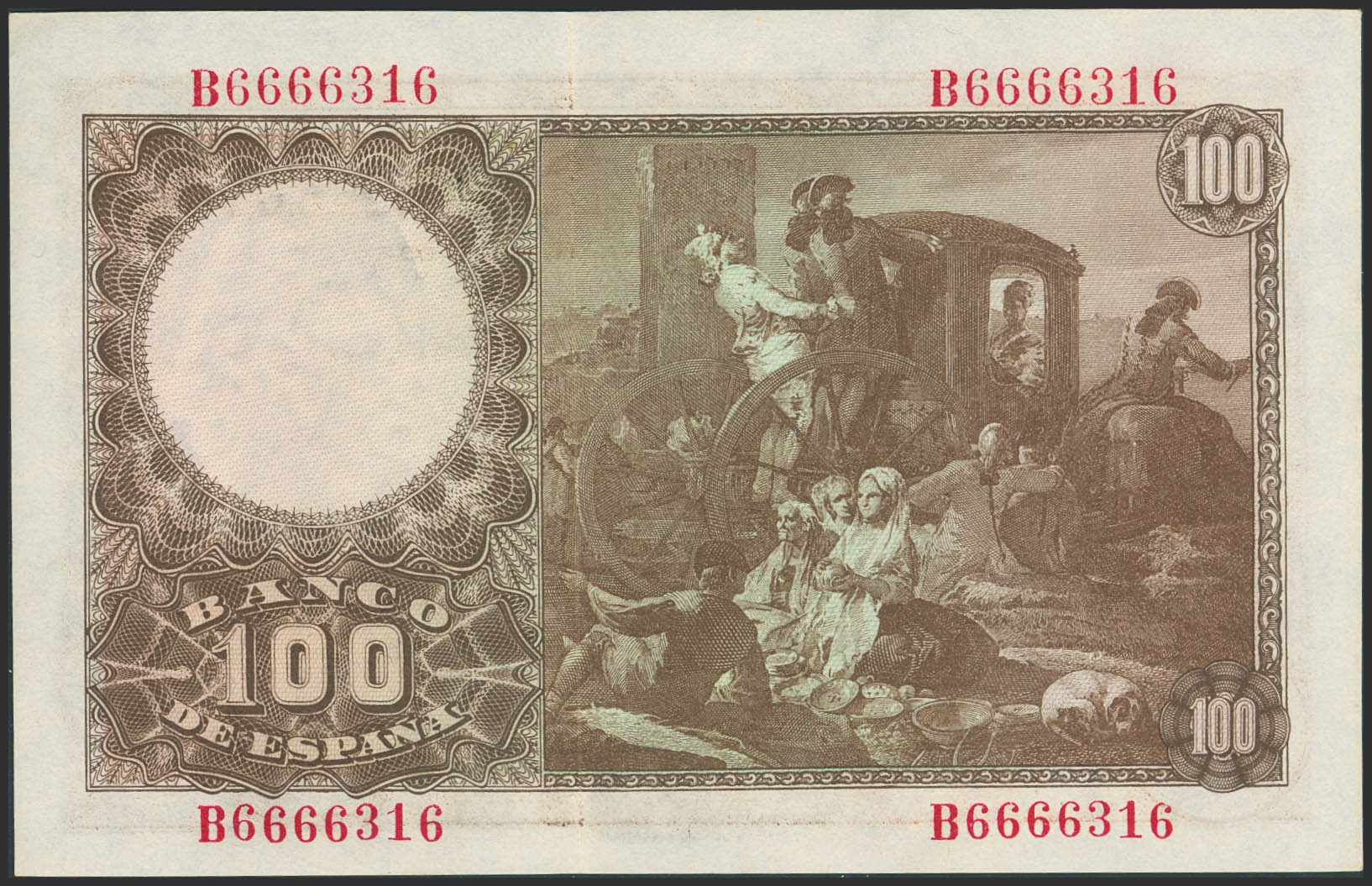 100 Pesetas. 2 de Mayo de 1948. Serie B. (Edifil 2023: 456a). Conserva gran parte del apresto original. EBC+++.