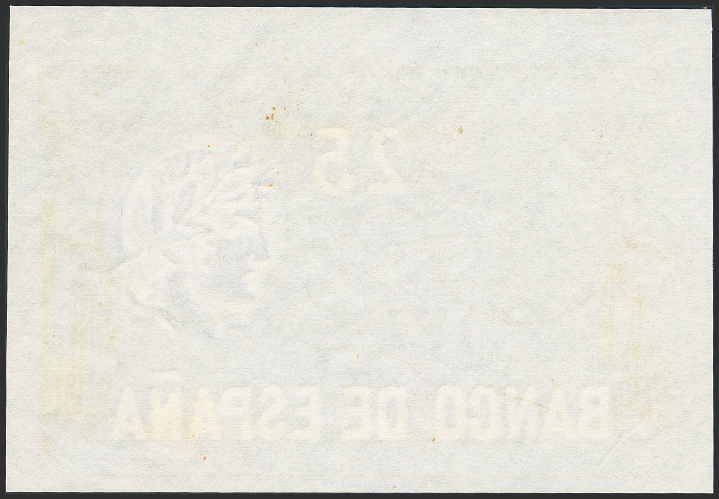 25 Pesetas. 1 de Enero de 1904. Prueba del anverso, sin numeración y sin firma del cajero. (Edifil 2023: NE11P). Muy rara. SC-.