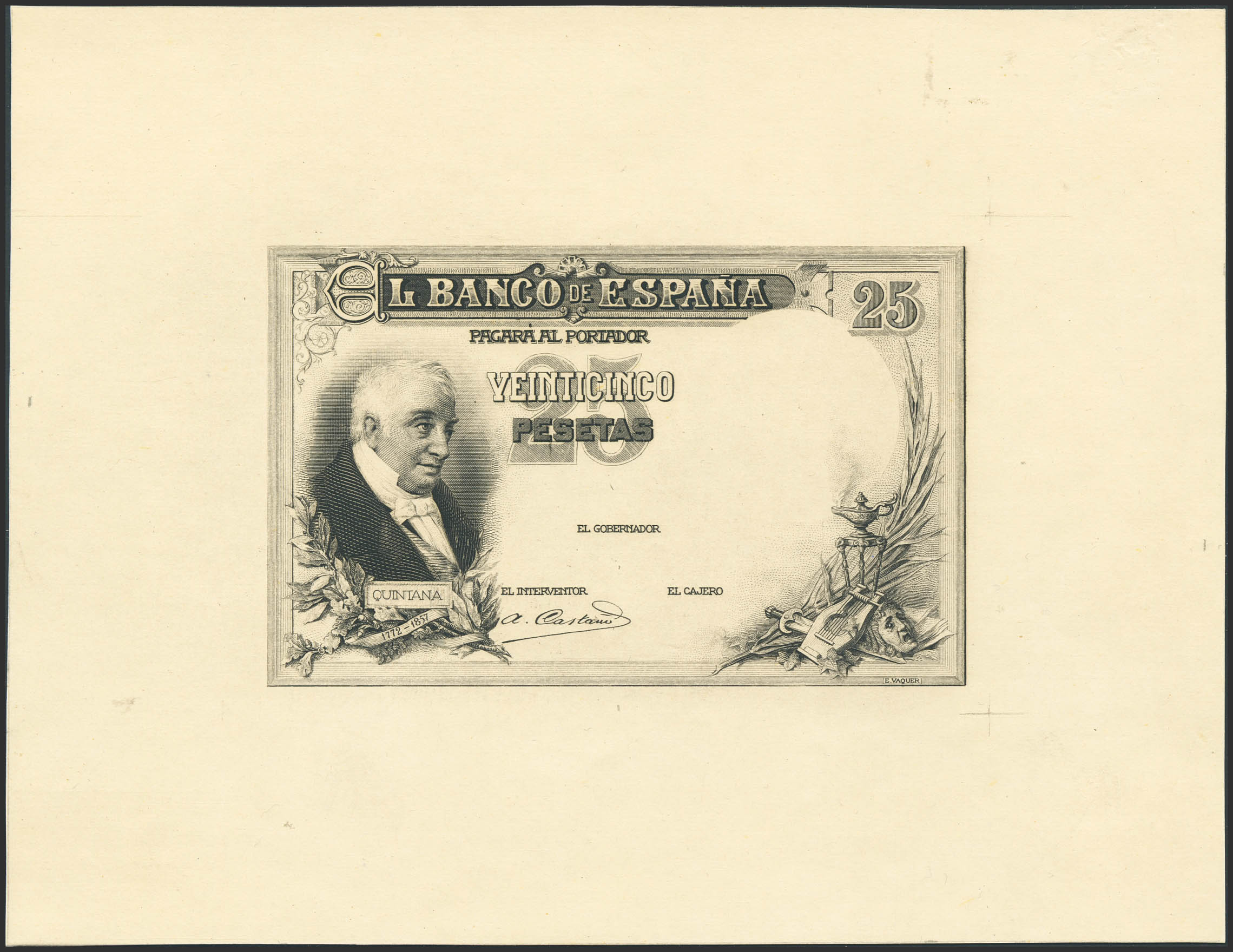 25 Pesetas. 1 de Diciembre de 1908. Prueba de anverso, sobre cartulina. (Edifil 2023: NE14P). Raro. SC.