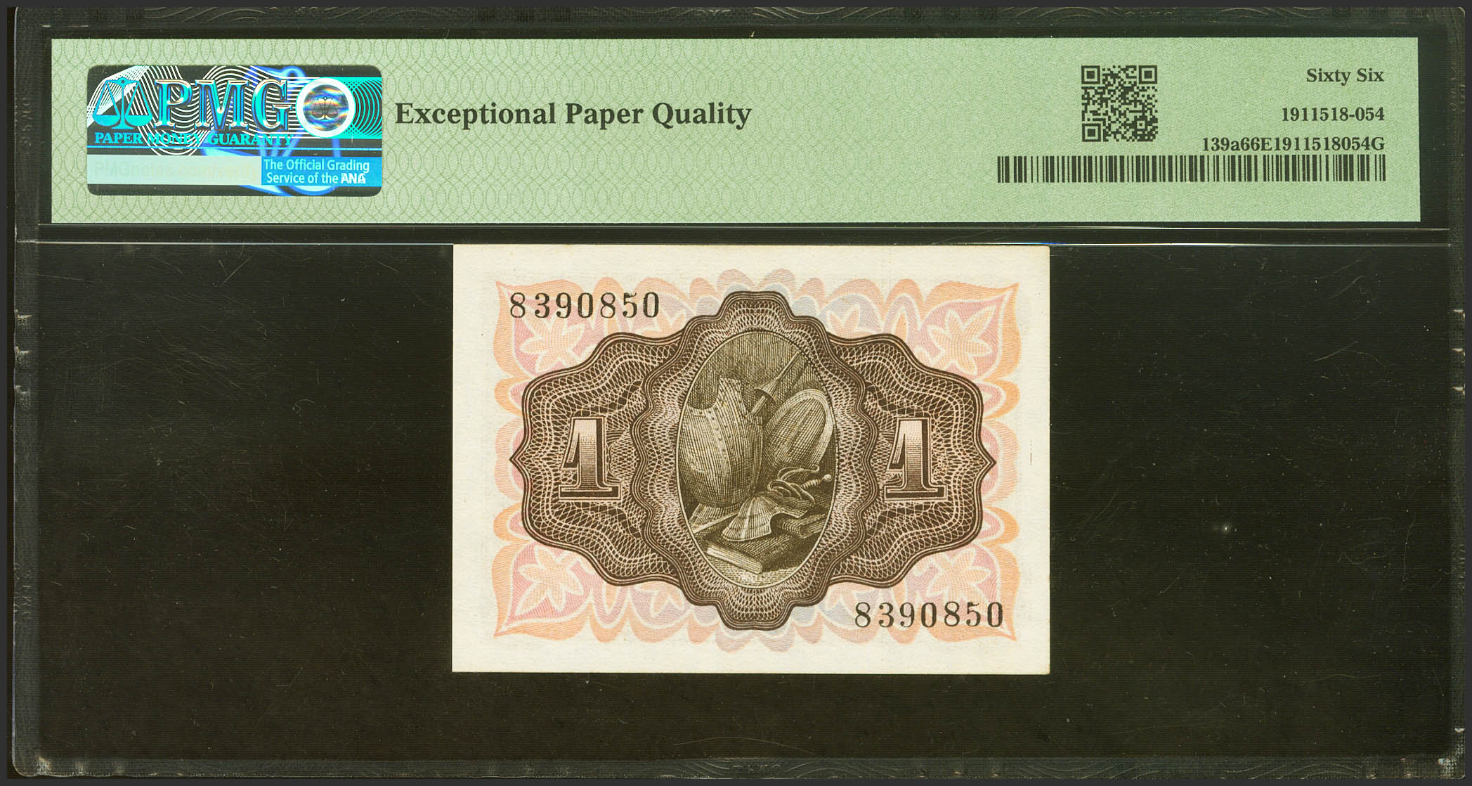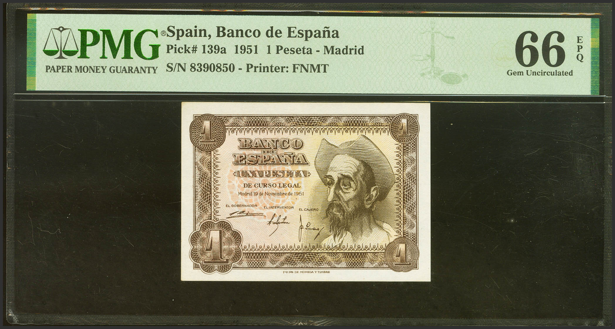 1 Peseta. 19 de Noviembre de 1951. Sin serie. (Edifil 2021: 461, Pick: 139a). Apresto original. SC. Encapsulado PMG66EPQ.