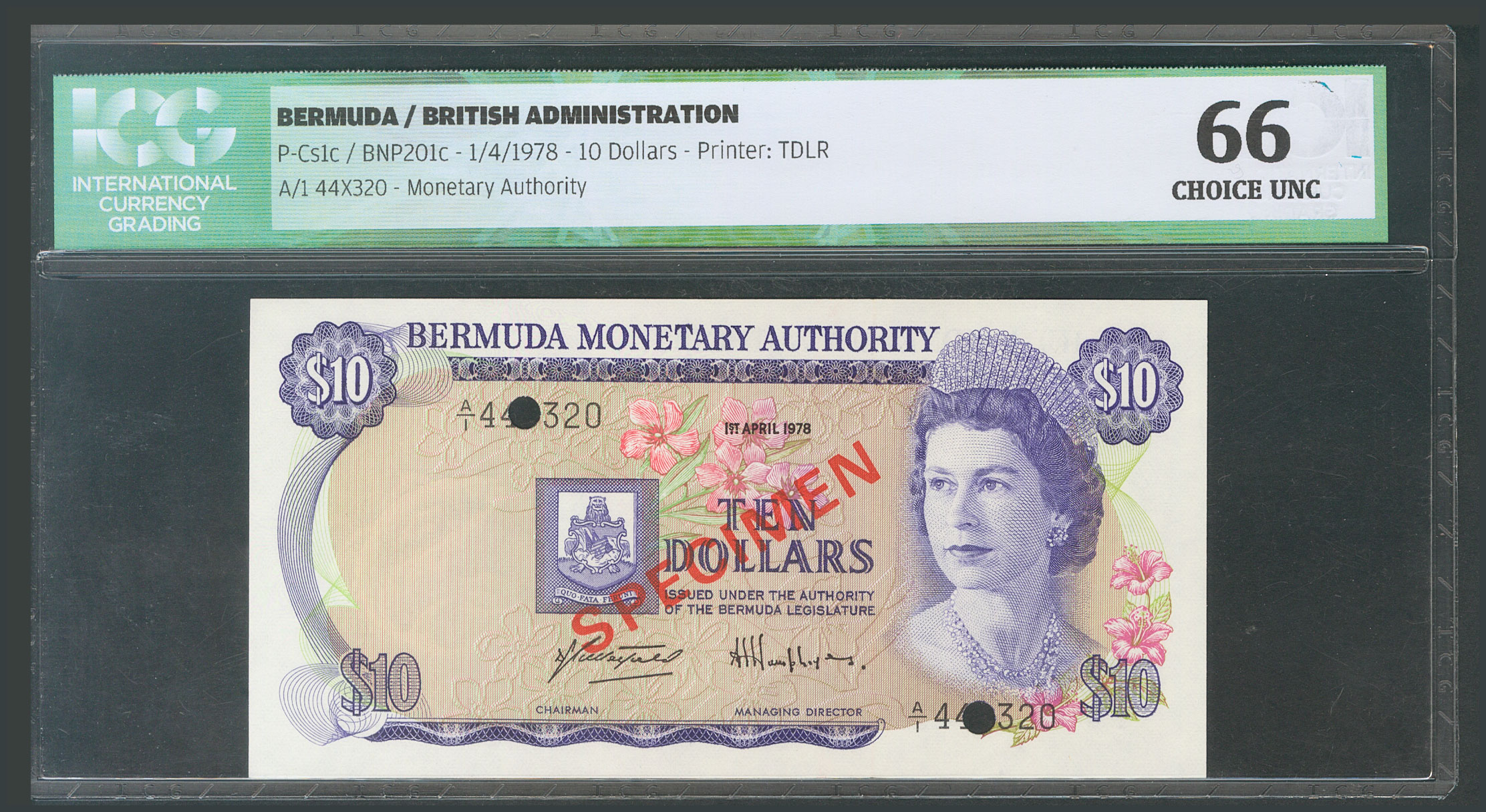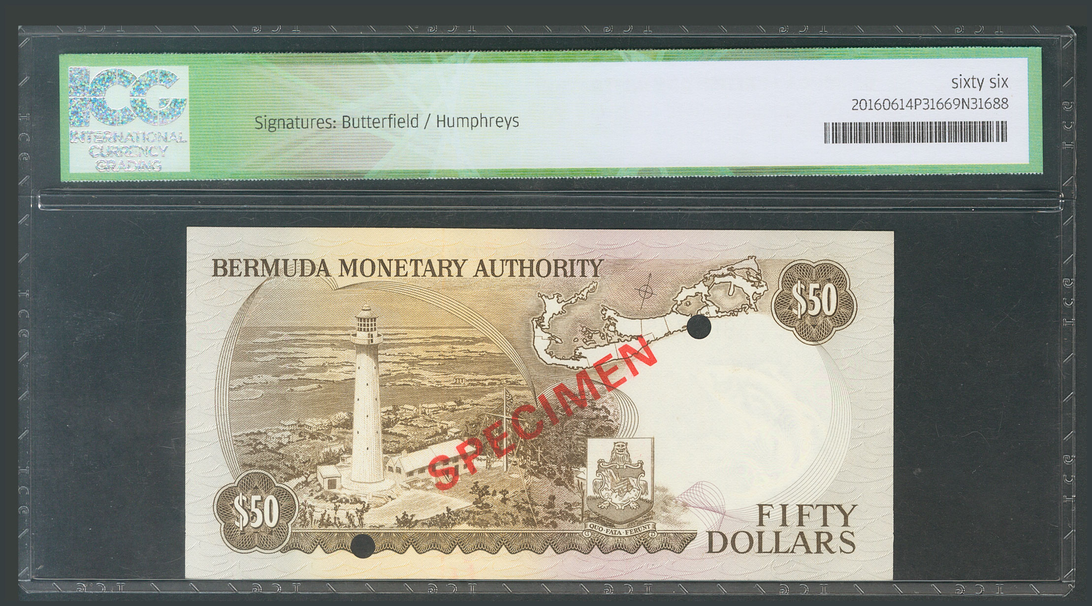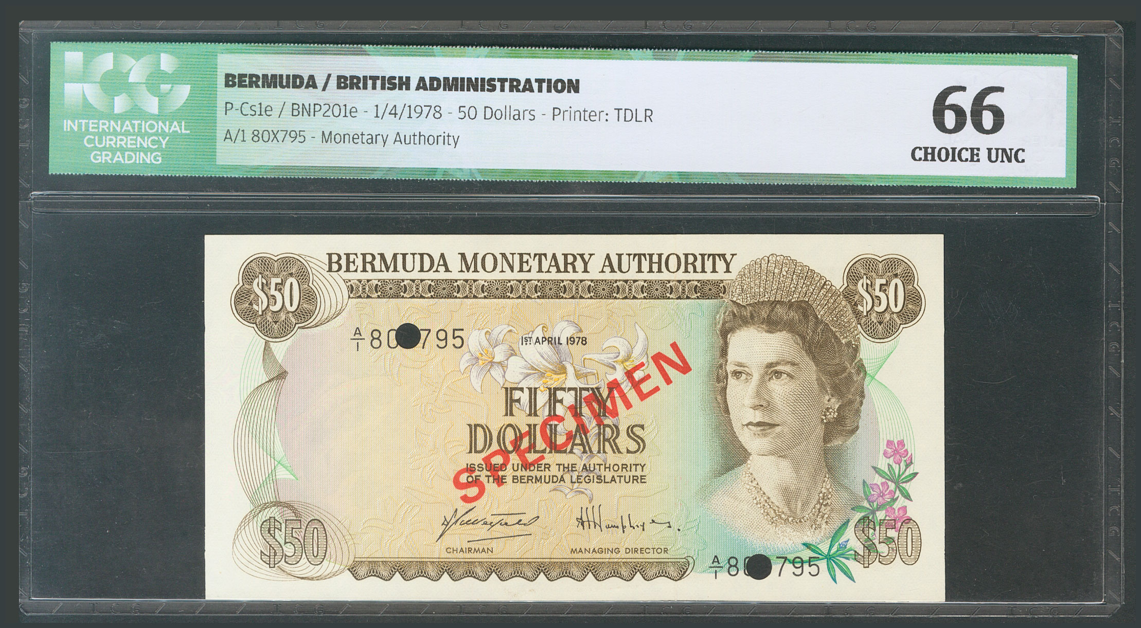 BERMUDA. 1 to 100 dollars. (1978ca). Bermuda Monetary Author. Specimen. (Pick: 28/33s). ICG60, 66, 66, 63, 66, 63.