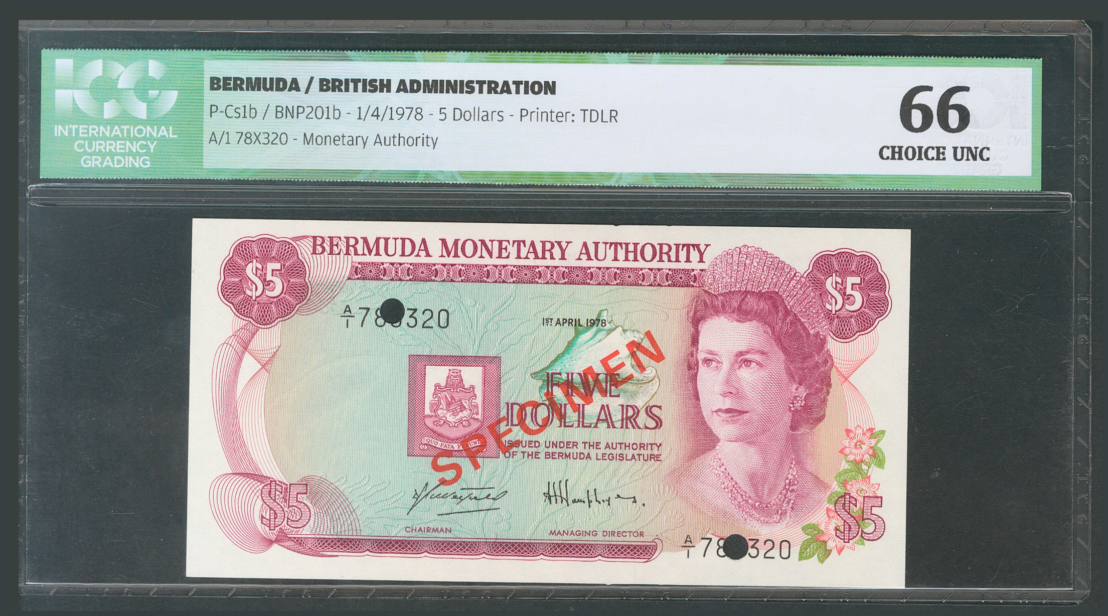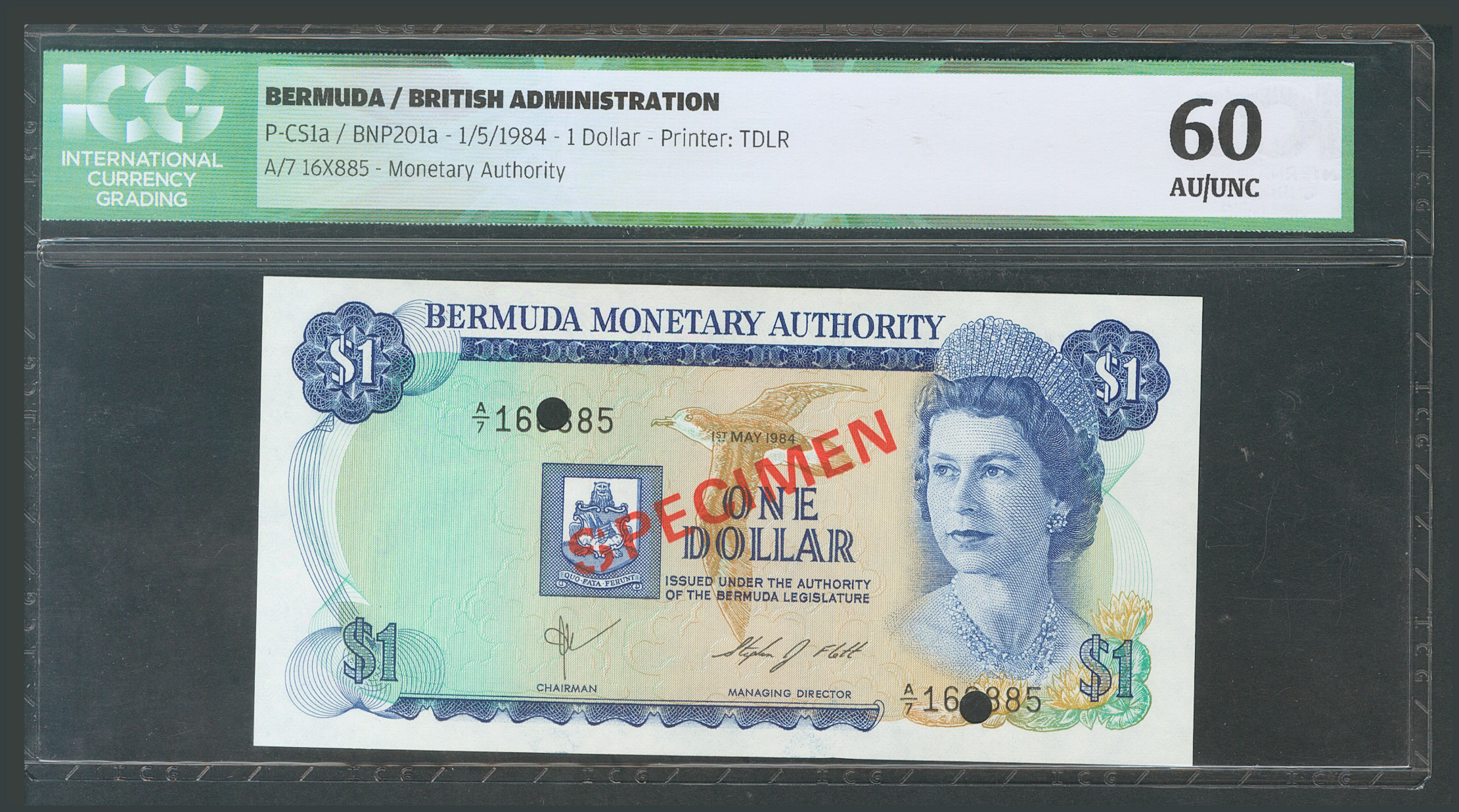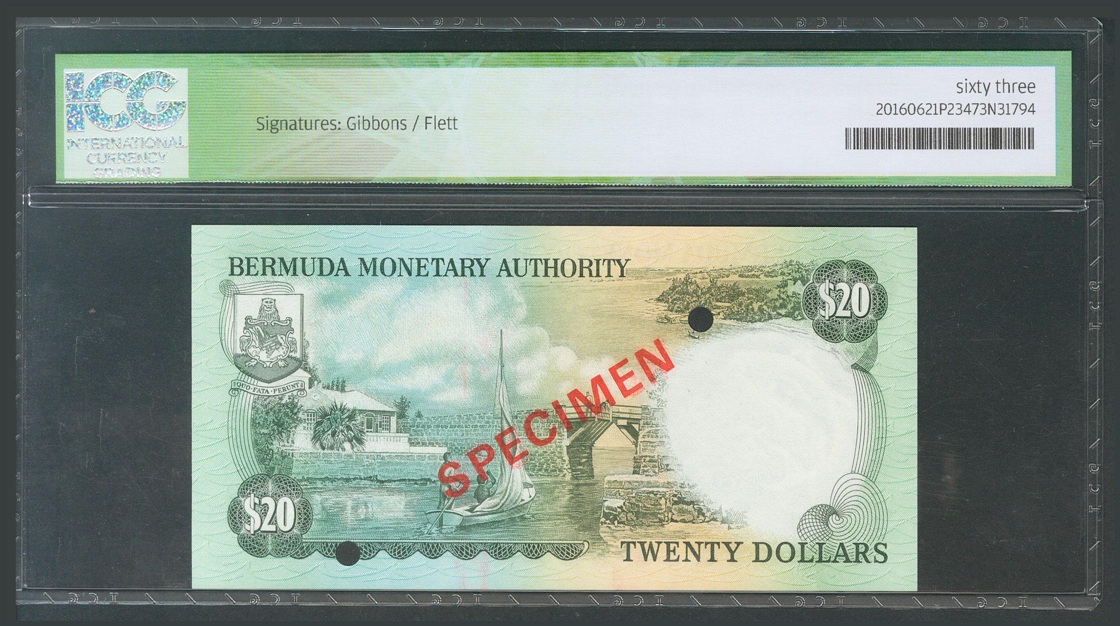 BERMUDA. 1 to 100 dollars. (1978ca). Bermuda Monetary Author. Specimen. (Pick: 28/33s). ICG60, 66, 66, 63, 66, 63.