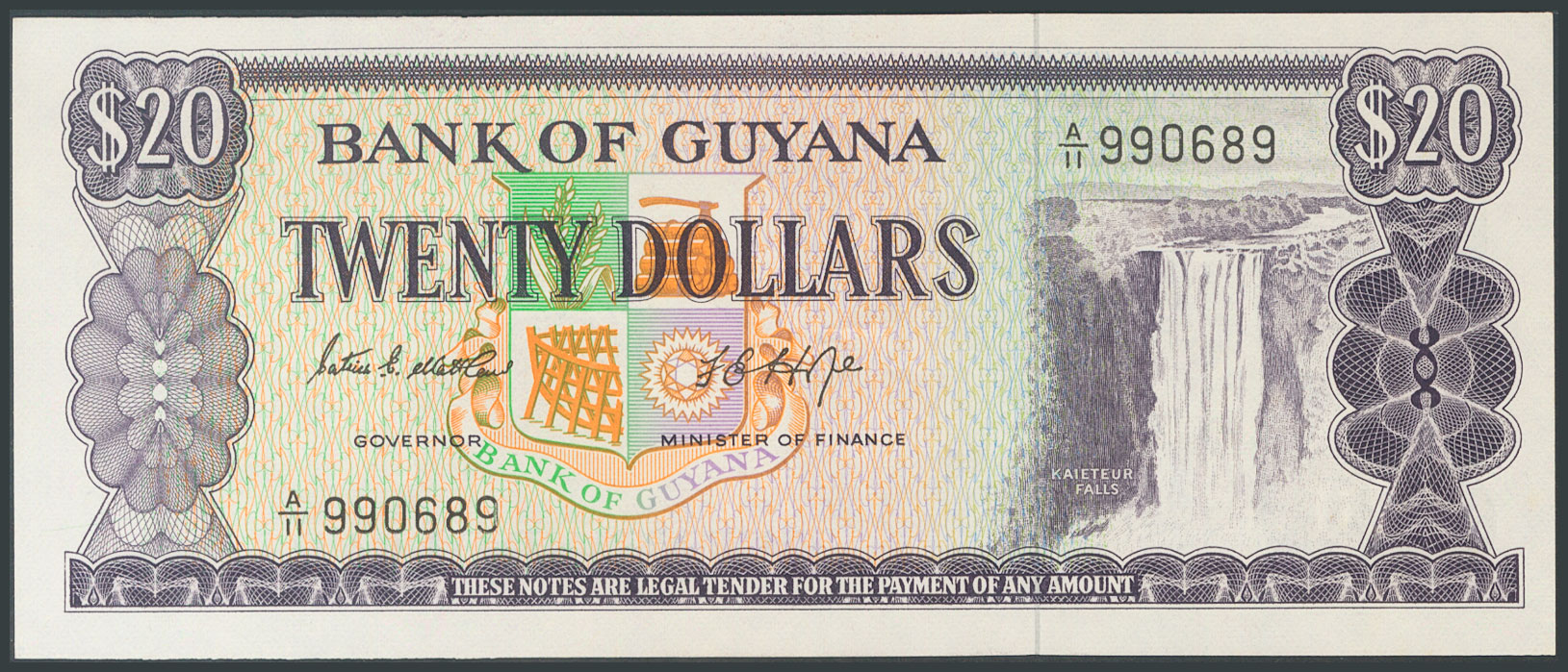 BRITISH GUIANA. 20 dollars. 1966. (Pick: 24c). Uncirculated.