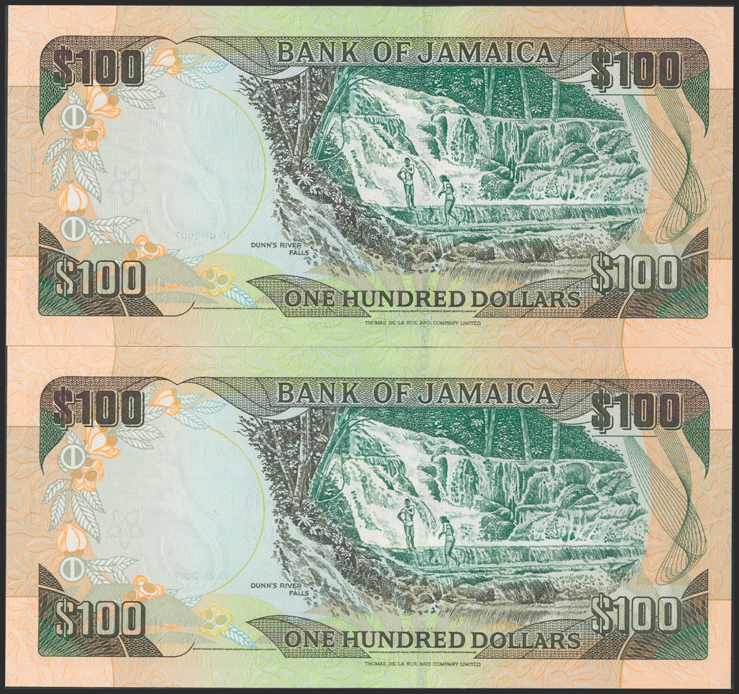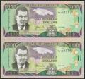 JAMAICA. 100 dollars. 15 January 2002. Consecutive pair. (Pick: 80b). Uncirculated.