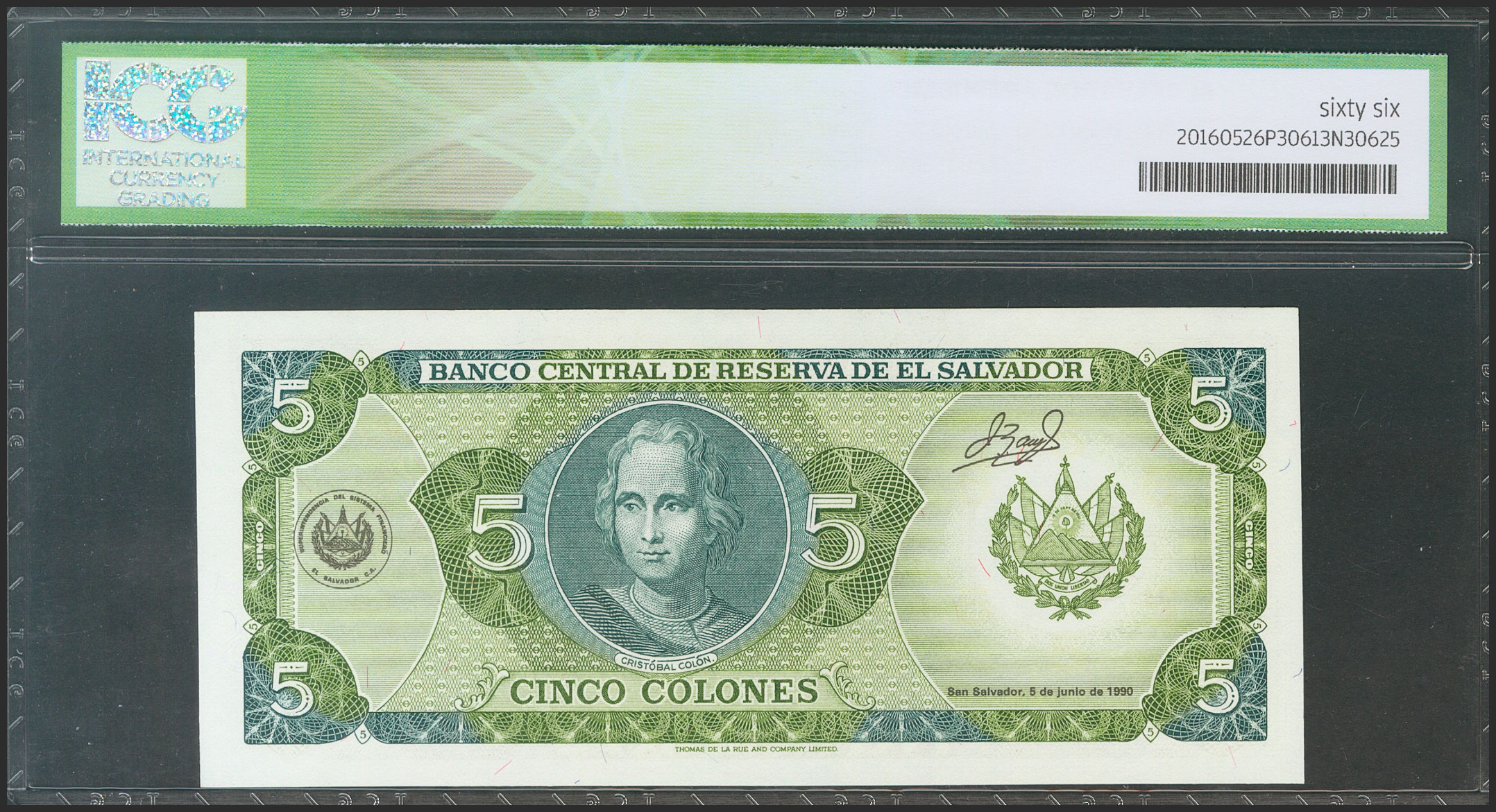THE SAVIOR. 5 colones. 16 May 1990. (Pick: 138a). ICG66.