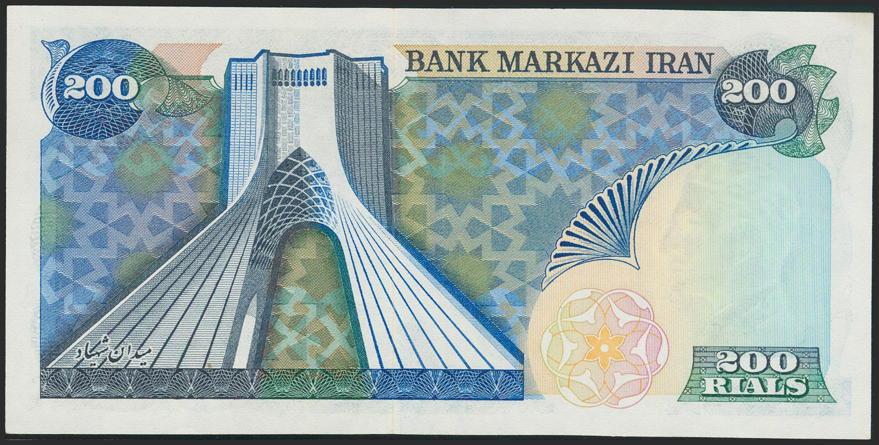 IRAN. 200 Rials. (1974ca). National Bank. Signatures: Mehran and Ansary, yellow security thread. (Pick: 103b). Uncirculated.