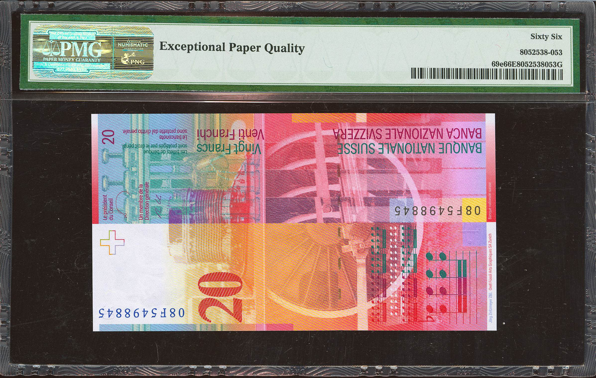 SWITZERLAND. 20 Franken. 2008. (Pick: 69e). PMG66EPQ.