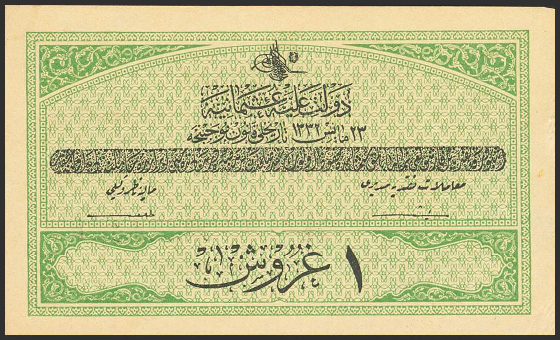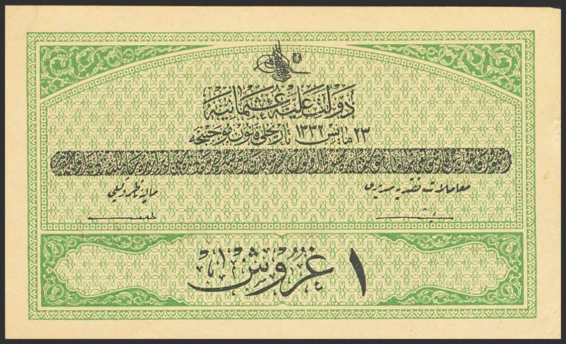 TURKEY. 1 Piastre. 1916. (Pick: 85). Less than Uncirculated.