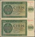 100 pesetas. November 21, 1936. Correlative couple. Series C. (Edifil 2017: 421a). Retains much of the original sizing. Extremely Fine/ Good Extremely Fine.