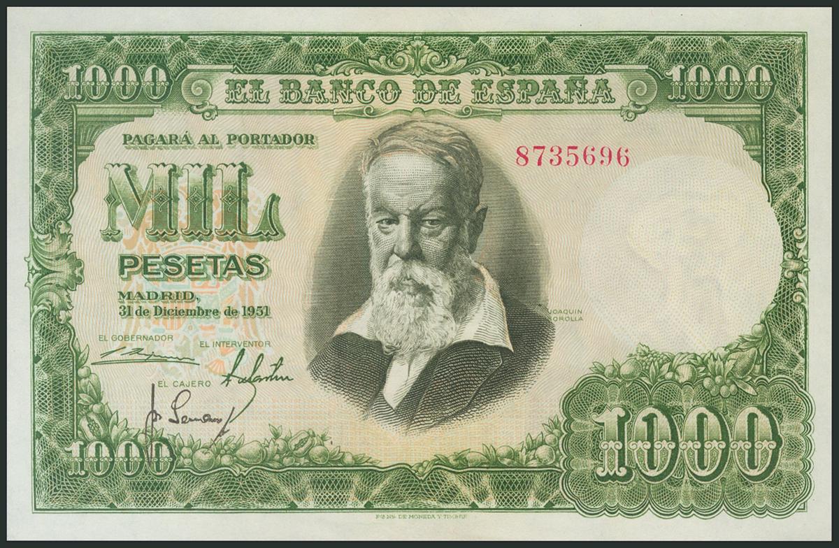 1000 Pesetas. December 31, 1951. No series. (Edifil 2017: 463). Retains much of the original sizing. Good Extremely Fine.