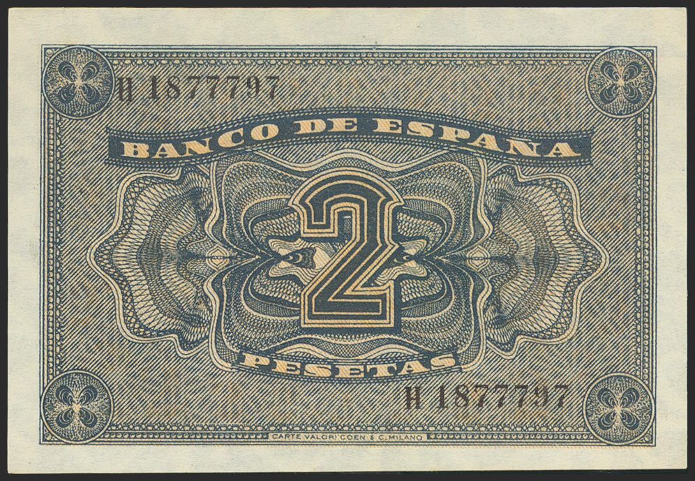 2 pesetas. April 30, 1938. Series H. (Edifil 2021: 429a). Original sizing. Uncirculated.
