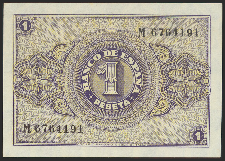 1 Peseta. April 30, 1938. Series M. (Edifil 2021: 428a). Original sizing. Uncirculated.