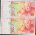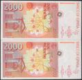 2000 Pesetas. April 24, 1992. Correlative couple. No series and low numbering. (Edifil 2017: 482). Uncirculated.