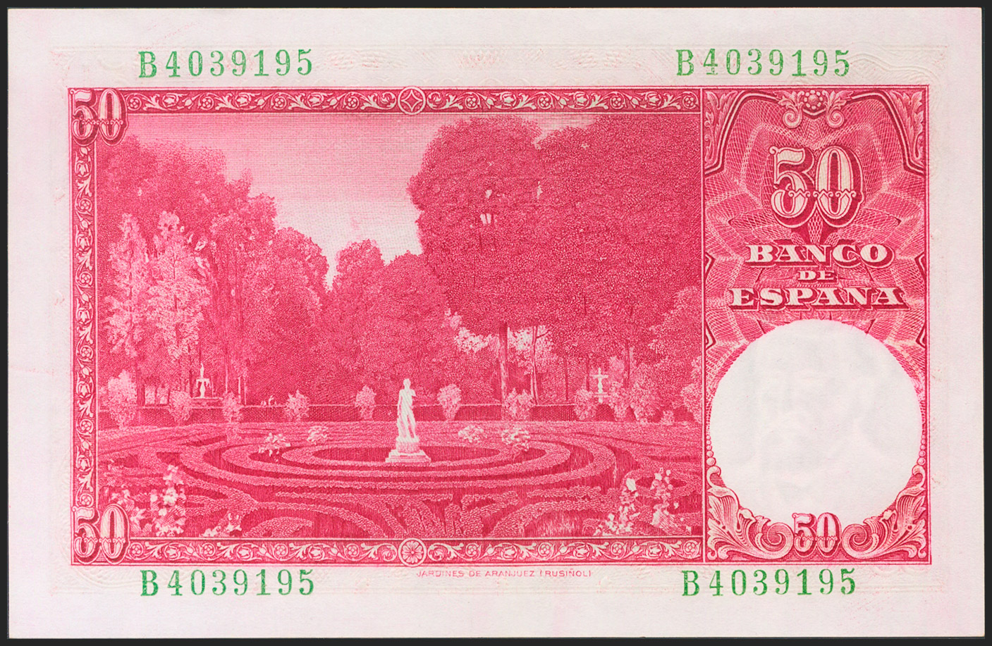 50 pesetas. December 31, 1951. Series B. (Edifil 2021: 462a). It retains all its original sizing. Almost Uncirculated.