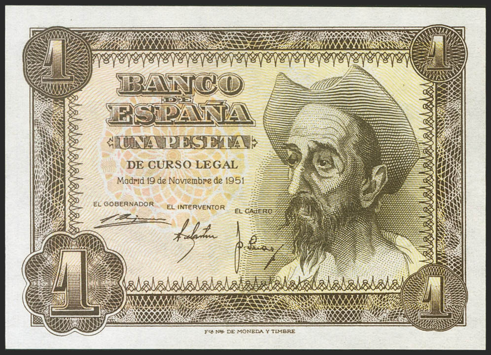 1 Peseta. November 19, 1951. Series H. (Edifil 2021: 461a). Original sizing. Uncirculated.