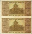 100 pesetas. May 20, 1938. Correlative couple. Series E. (Edifil 2021: 432a). It retains much of its original sizing. Good Extremely Fine.