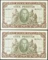 100 pesetas. January 9, 1940. Correlative couple. Series H. (Edifil 2021: 438a). Original sizing. Almost Uncirculated-.