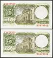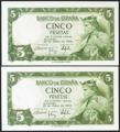5 pesetas. July 22, 1954. Correlative couple. Series P. (Edifil 2021: 466a). Original sizing. Uncirculated.