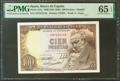 100 pesetas. February 19, 1946. Series A. (Edifil 2021: 451a, Pick: 131a). Rare in this quality, original sizing. Uncirculated. PMG65EPQ package.