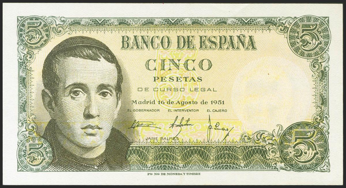 5 pesetas. April 12, 1947. Series R. (Edifil 2021: 459a). original sizing Almost Uncirculated.