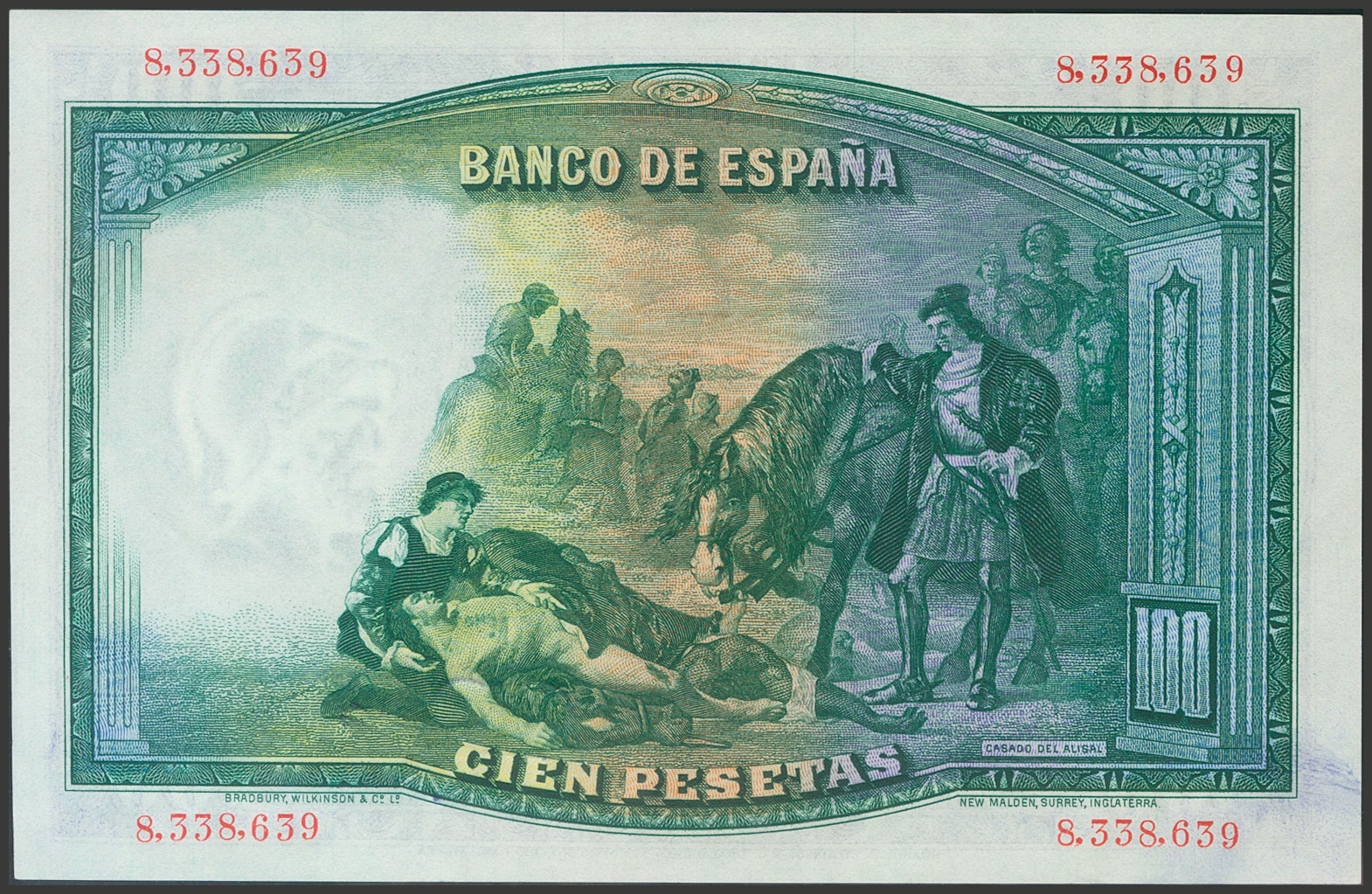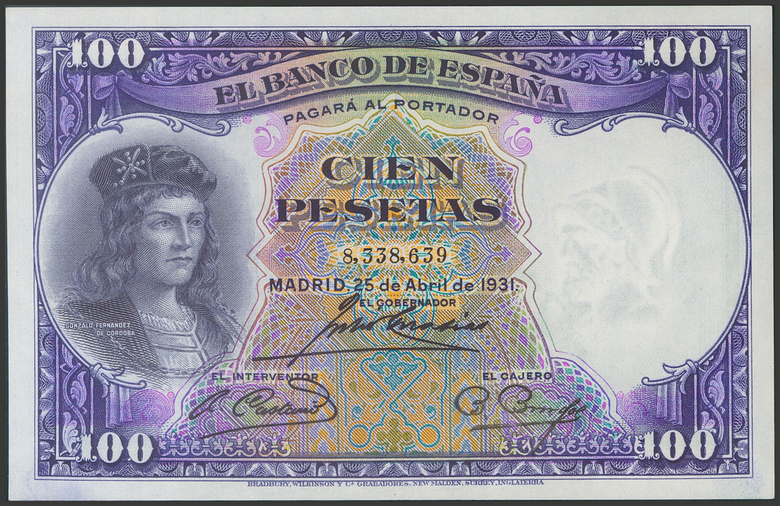 English 100 Pesetas. April 25, 1931. No series. (Edifil 2017: 360). It retains all its original finish. Almost Uncirculated.