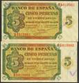 English 5 Pesetas. August 10, 1938. Correlative couple. Series B. (Edifil 2021: 435a). It retains all its original finish. Uncirculated.