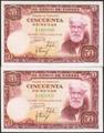 50 Pesetas. December 31, 1951. Correlative couple. Series B. (Edifil 2021: 462a). It retains all its original finish. Almost Uncirculated-.