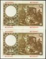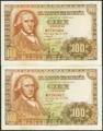 100 Pesetas. May 2, 1948. Correlative pair. Series D. (Edifil 2021: 456a). It retains much of its original finish. Good Extremely Fine.