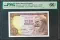 100 Pesetas. 19 de Febrero de 1946. Serie B. (Edifil 2021: 451, Pick: 131a). Raro en esta calidad, apresto original. SC. Encapsulado PMG66EPQ.