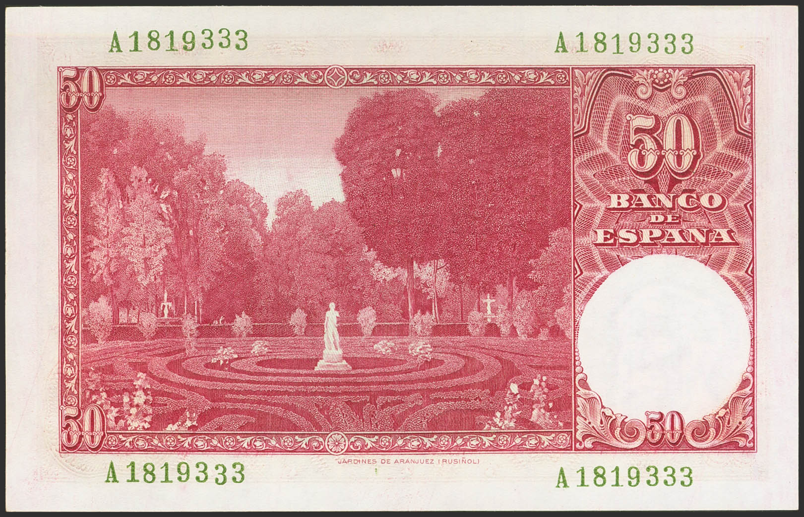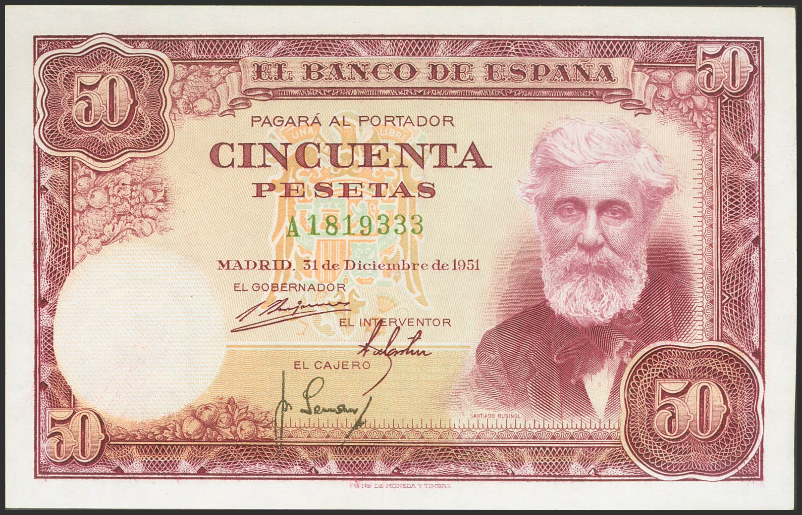 50 Pesetas. 31 de Diciembre de 1951. Serie A. (Edifil 2023: 462a). Conserva todo su apresto original. SC.
