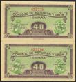 40 Céntimos. 1937. Asturias y León. Pareja correlativa. Sin serie. (Edifil 2023: 395). Apresto original. SC.