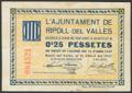RIPOLL OF THE VALLEYS (BARCELONA). 25 cents. April 21, 1937. Imprint without "<<>>". (Gonzalez: 9662). Unusual. Extremely Fine.