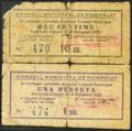 PUIGPELAT (TARRAGONA). 10 Cents and 1 Peseta. September 1937. (González: 9496, 9499). Very rare. Good.