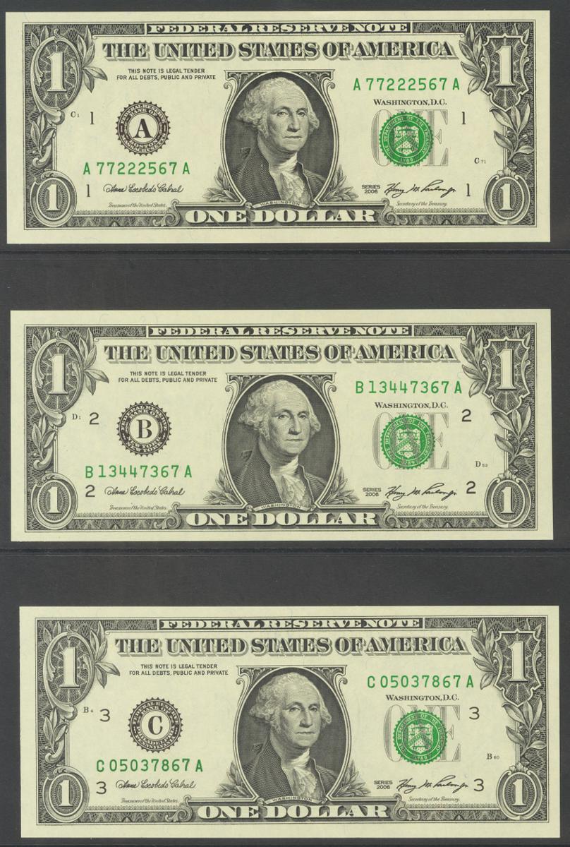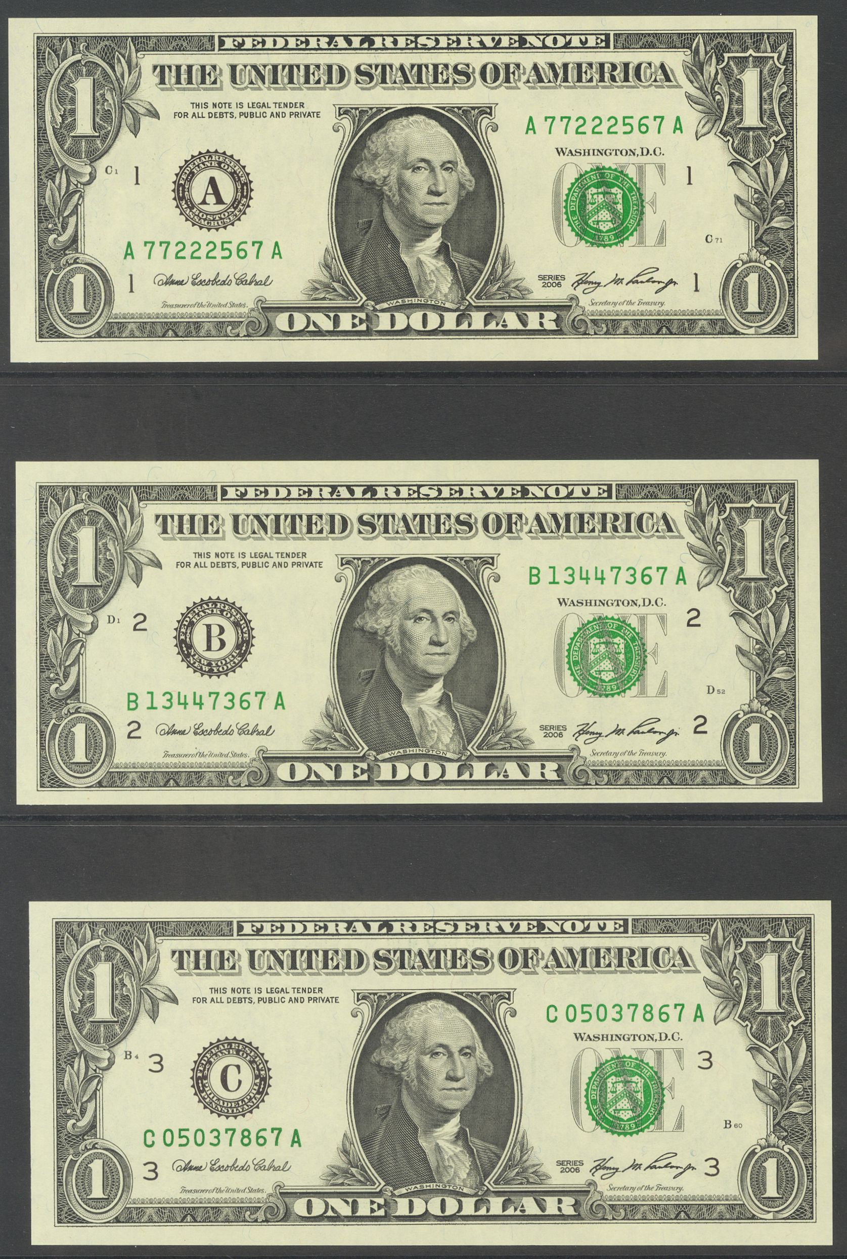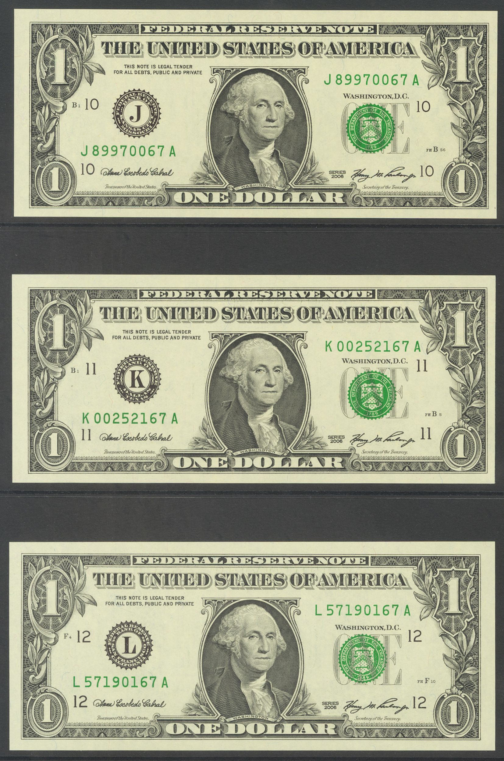 USES. 1 dollar. Federal Reserve Note. 12 banknotes from serial number A to L (all issuing banks included). 2006. (Friedberg: 1932A/L). Nice set. Uncirculated.