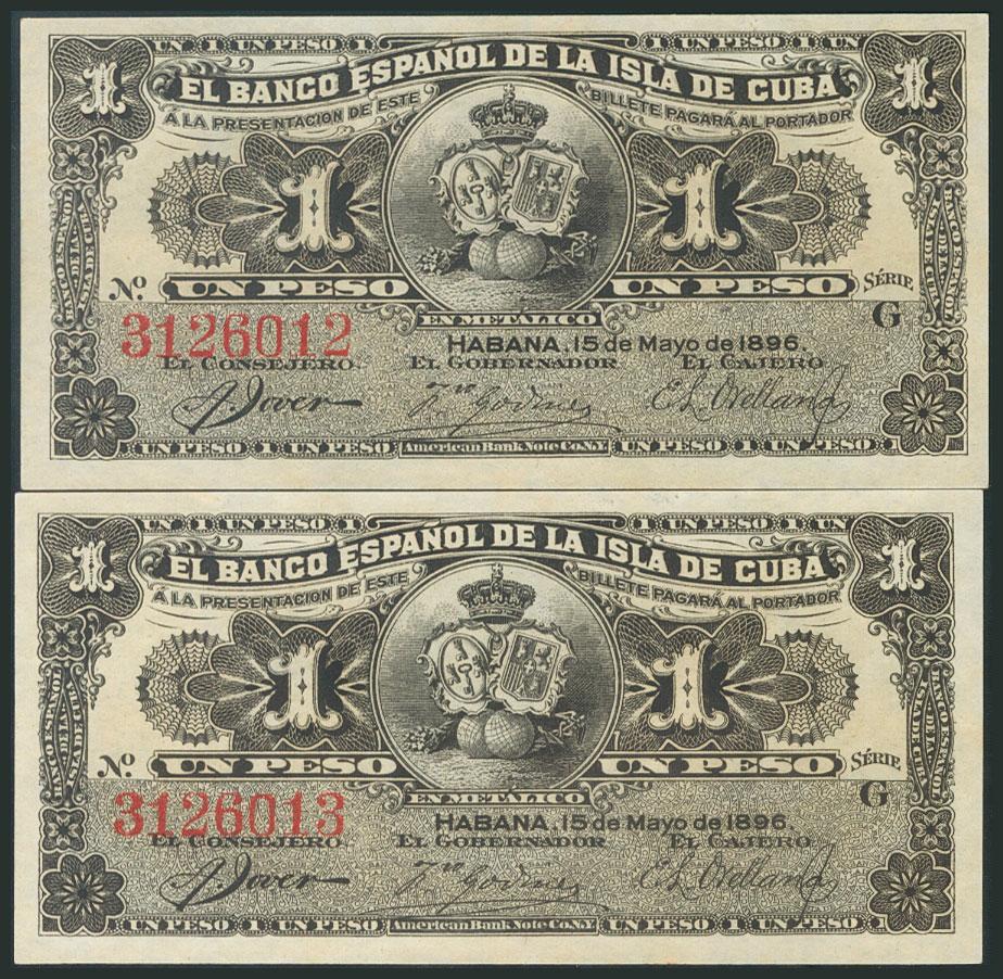 CUBA. 1 Weight. May 15, 1896. Correlative couple. Series G. (Edifil 2017: 71). Uncirculated.